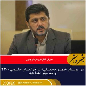 مدیرکل انتقال خون خراسان جنوبی گفت: چهار هزار و ۳۳۵ نفر در پویش مهر حسینی برای ایران مشارکت کردند که سه هزار و ۳۳۰ نفر