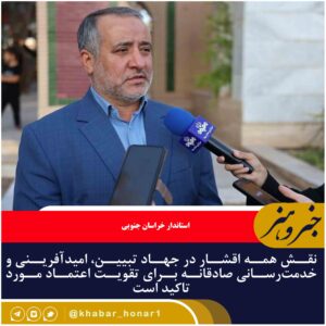 استاندار خراسان جنوبی بر نقش همه اقشار در جهاد تبیین، امیدآفرینی و خدمترسانی صادقانه برای تقویت اعتماد عمومی تاکید کرد و گفت: مسئولان با خدمت