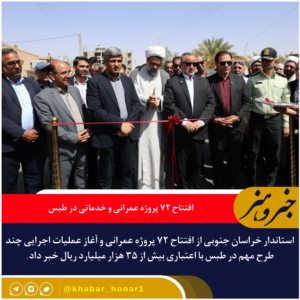 به گزارش خبر و هنر، استاندار خراسان جنوبی در دومین روز هفته دولت با سفر به شهرستان طبس، ۷۲ پروژه عمرانی و خدماتی را با
