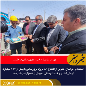 به گزارش خبر و هنر، در دومین روز هفته دولت و با حضور سید محمدرضا هاشمی، استاندار خراسان جنوبی، ۸۰ پروژه برقرسانی در شهرستان طبس