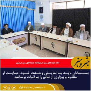 امام جمعه اهل سنت درمیان با بیان اینکه امروز مسئولیت امت پیامبر بسیار سنگین است تا وحدت خود را به نمایش بگذارند گفت مسلمانان باید