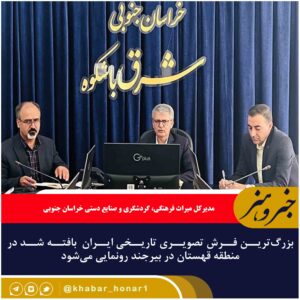 مدیرکل میراث فرهنگی، گردشگری و صنایع دستی خراسان جنوبی گفت: در مراسمی ویژه در بیرجند، بزرگترین فرش تصویری تاریخی ایران رونمایی میشود که علاوه بر