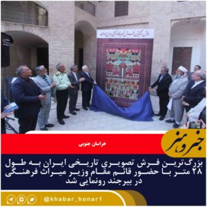 بزرگترین فرش تصویری تاریخی ایران به طول ۲۸ متر با حضور قائم مقام وزیر میراث فرهنگی در بیرجند رونمایی شد و همراه با هشت اثر