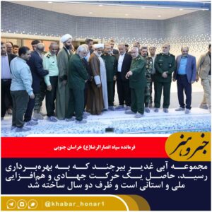فرمانده سپاه انصارالرضا(ع) خراسان جنوبی گفت: مجموعه آبی غدیر بیرجند که به بهرهبرداری رسید، حاصل یک حرکت جهادی و همافزایی ملی و استانی است و