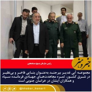 رئیس سازمان بسیج مستضعفین گفت: مجموعه آبی غدیر بیرجند بهعنوان بنایی فاخر و بینظیر در شرق کشور، ثمره مجاهدتهای جهادی فرمانده سپاه و همکاران ایشان