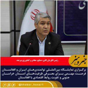 رئیس اتاق بازرگانی، صنایع، معادن و کشاورزی بیرجند، برگزاری نمایشگاه بینالمللی توانمندیهای ایران و افغانستان را فرصت مهمی برای معرفی ظرفیتهای استان خراسان جنوبی و