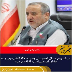 🔹استاندار خراسان جنوبی گفت: در شروع سال تحصیلی جدید ۱۲۷ کلاس درس به فضای آموزشی استان اضافه میشود. پسید محمدرضا هاشمی با اشاره به ایام