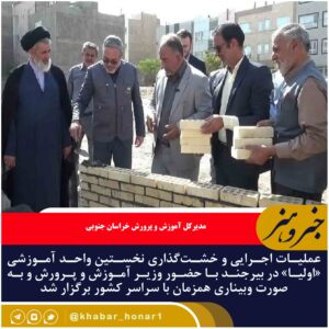 عملیات اجرایی و خشتگذاری نخستین واحد آموزشی «اولیا» در بیرجند با حضور وزیر آموزش و پرورش و به صورت وبیناری همزمان با سراسر کشور برگزار