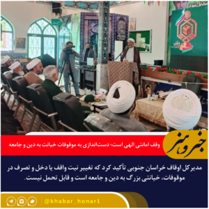 به گزارش خبر و هنر، مدیرکل اوقاف و امور خیریه خراسان جنوبی با بیان اینکه وقف امانتی الهی در دست ماست، گفت: هرگونه تغییر در