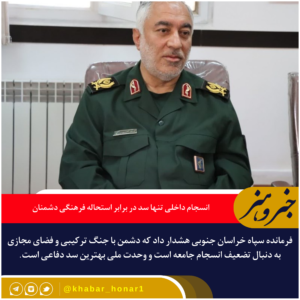 به گزارش خبر و هنر، سردار محمدرضا مهدوی، فرمانده سپاه انصارالرضا(ع) خراسان جنوبی، با تأکید بر ضرورت حفظ وحدت و آگاهیبخشی، هشدار داد که «دشمنان