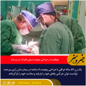 موفقیت در جراحی پیچیده ستون فقرات در بیرجند | بازگشت توان حرکتی به بیمار عراقی
