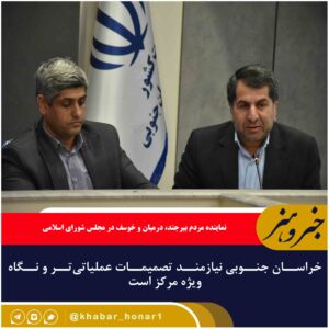 نماینده مردم بیرجند، درمیان و خوسف در مجلس شورای اسلامی با اشاره به برخی مشکلات استان، گفت: خراسان جنوبی نیازمند تصمیمات عملیاتیتر و نگاه ویژه