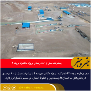 به گزارش خبر و هنر، محمد جوادیان، مجری طرح تماممکانیزه پروده ۴، در حاشیه بازدید وزیر صنعت، معدن و تجارت از این مجموعه، گزارشی از