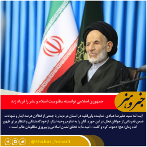 به گزارش خبر و هنر، آیتالله سید علیرضا عبادی، نماینده ولیفقیه در خراسان جنوبی در دیدار با جمعی از فعالان عرصه ایثار و شهادت، ضمن