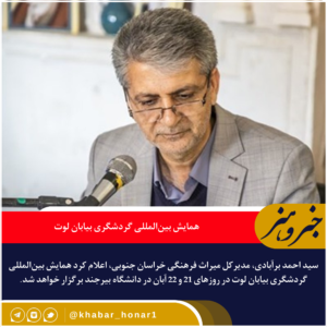 سید احمد برآبادی، مدیرکل میراث فرهنگی خراسان جنوبی، اعلام کرد همایش بینالمللی گردشگری بیابان لوت در روزهای ۲۱ و ۲۲ آبان در دانشگاه بیرجند برگزار