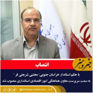 با حکم استاندار خراسان جنوبی” مجتبی شریعتی فر ” به سمت سرپرست معاون هماهنگی امور اقتصادی استانداری منصوب شد. سید محمدرضا هاشمی ، حکم انتصاب”