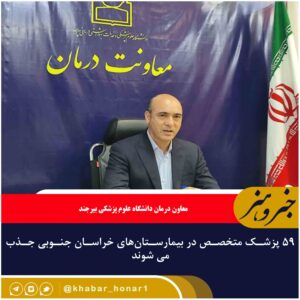 معاون درمان دانشگاه علوم پزشکی بیرجند از جذب ۵۹ پزشک متخصص در بیمارستانهای خراسان جنوبی خبر داد. جلال احمدی در جلسه توجیهی پزشکان جدیدالورود اظهار