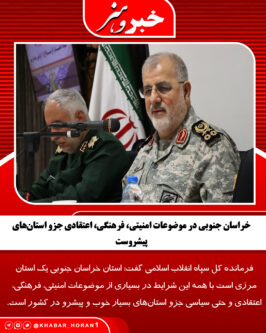 فرمانده کل سپاه انقلاب اسلامی گفت: استان خراسان جنوبی یک استان مرزی است با همه این شرایط در بسیاری از موضوعات امنیتی، فرهنگی، اعتقادی و