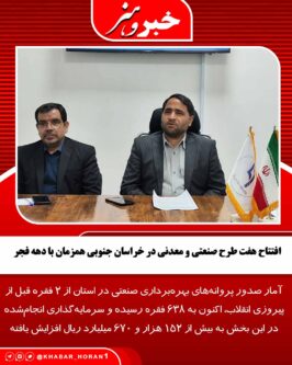 - افتتاح هفت طرح صنعتی و معدنی در خراسان جنوبی همزمان با دهه فجر