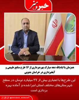 - همزمان با ایامالله دهه مبارک بهرهبرداری از ۱۶ طرح منابع طبیعی و آبخیزداری در خراسان جنوبی