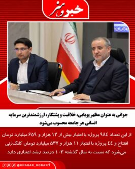 جوانی به عنوان مظهر پویایی، خلاقیت و پشتکار، ارزشمندترین سرمایه انسانی هر جامعه