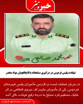 - شهادت پلیس فردوس در درگیری مسلحانه با قاچاقچیان مواد مخدر