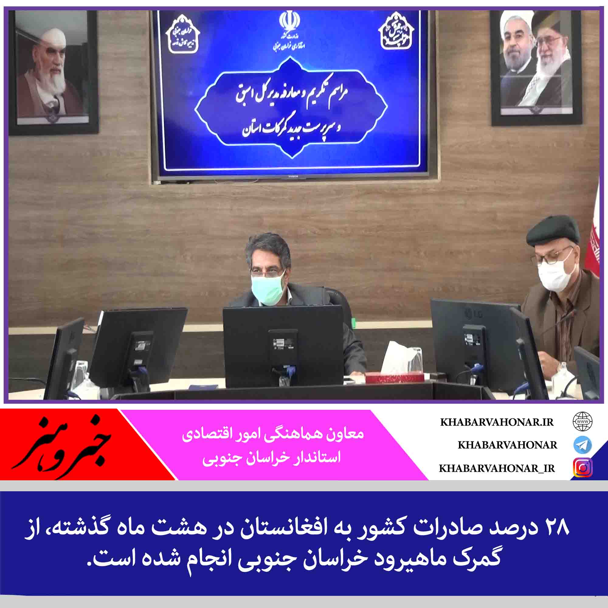۲۸ درصد صادرات کشور به افغانستان در هشت ماه گذشته، از گمرک ماهیرود خراسان جنوبی انجام شده است.