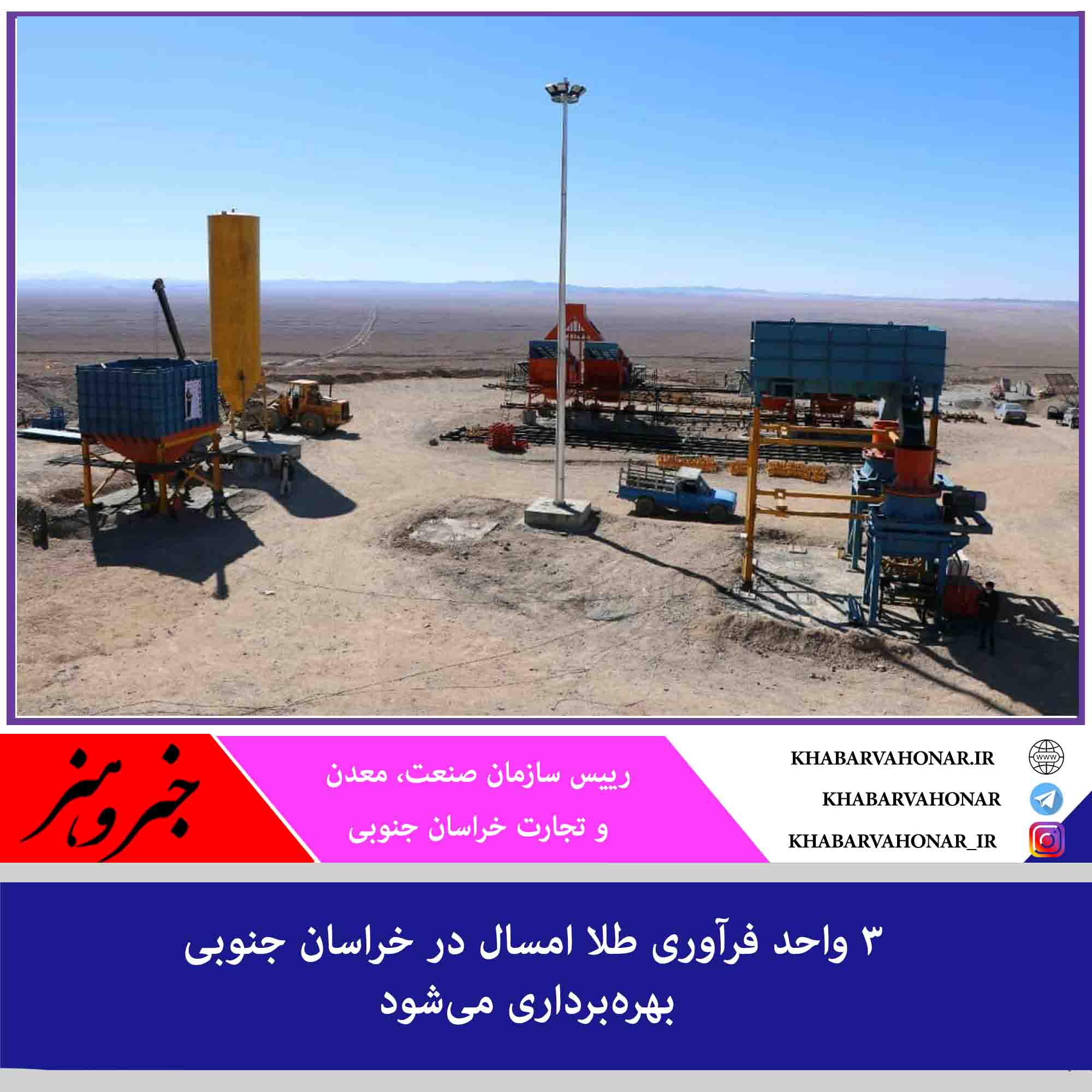 رییس سازمان صنعت، معدن و تجارت خراسان جنوبی گفت: سه واحد فرآوری و استحصال طلا امسال در این استان به بهرهبرداری میرسد و اشتغال مناسبی را ایجاد میکند.