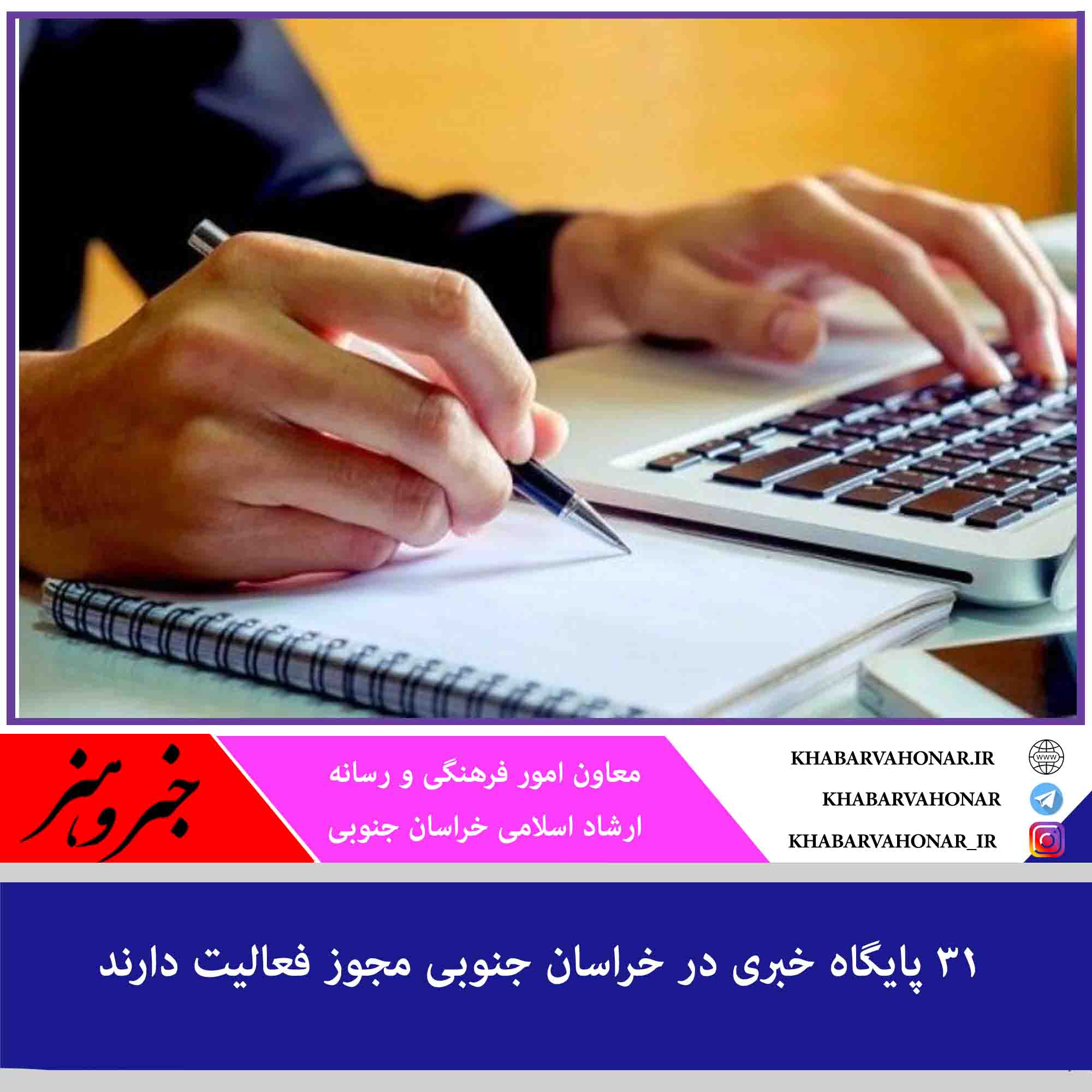 معاون امور فرهنگی و رسانه اداره کل فرهنگ و ارشاد اسلامی خراسان جنوبی گفت: در حال حاضر ۳۱ پایگاه خبری در استان خراسان جنوبی دارای مجوز هستند و در گستره استان فعالیت دارند.