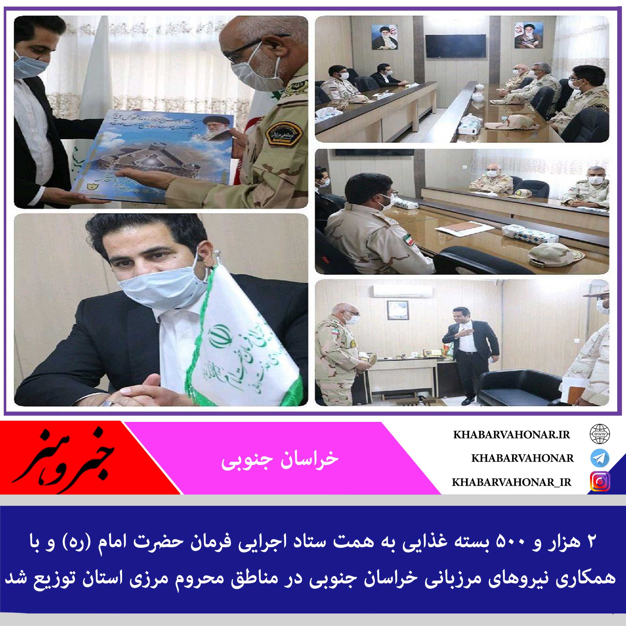بنابر این گزارش در راستای اجرای مرحله دوم رزمایش همدلی و کمک به آسیبدیدگان کرونا توسط بنیاد احسان ستاد اجرایی فرمان حضرت امام (ره) و نیروهای مرزبانی استان خراسان جنوبی ۱۰ تن گوشت مرغ در قالب ۲ هزار و ۵۰۰ بسته پروتئینی در مناطق محروم مرزی استان توزیع شد.