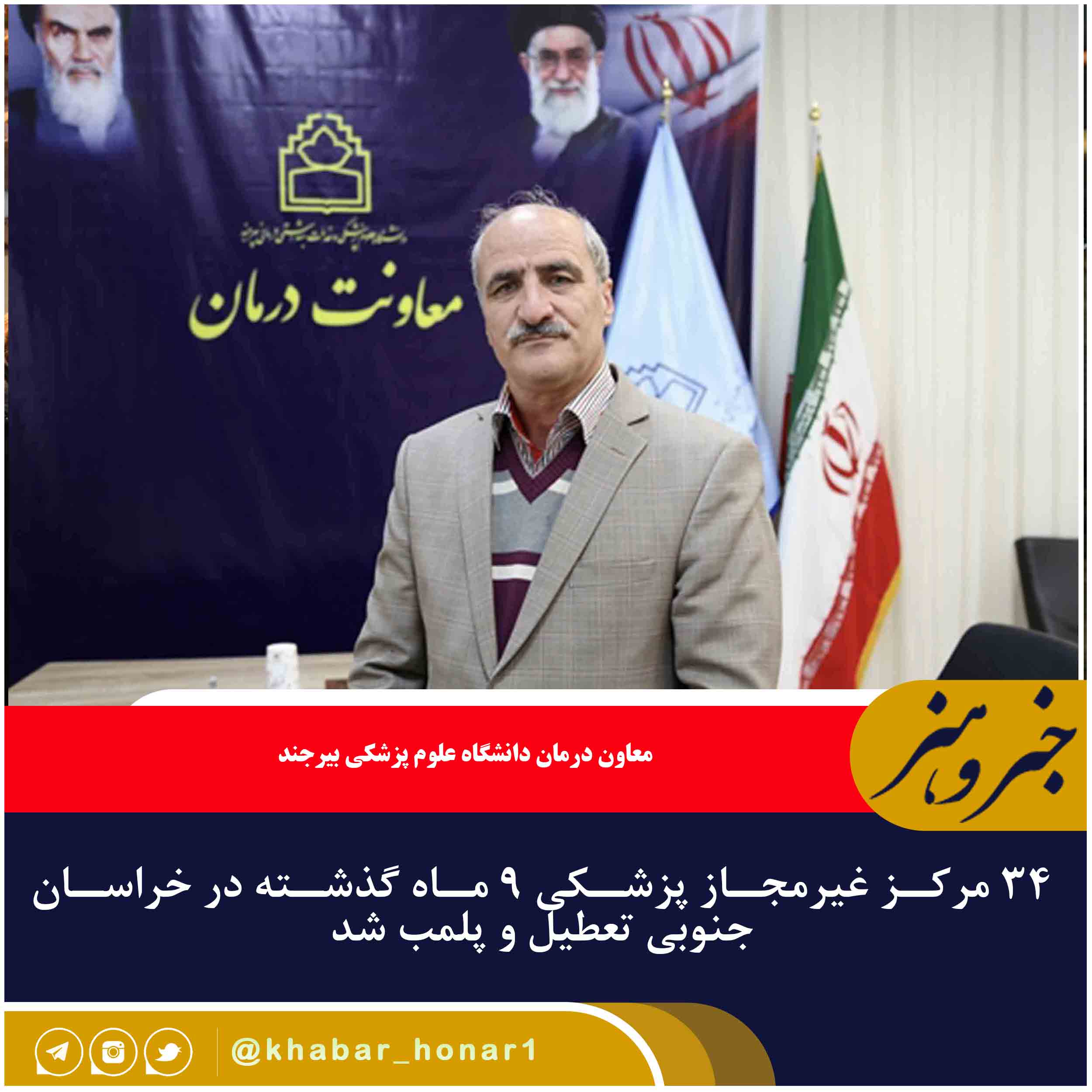 معاون درمان دانشگاه علوم پزشکی بیرجند گفت: ۳۴ مرکز غیرمجاز و مداخله حوزههای مختلف پزشکی ۹ ماه گذشته از سال جاری در استان خراسان جنوبی شناسایی، تعطیل و پلمب شده است.