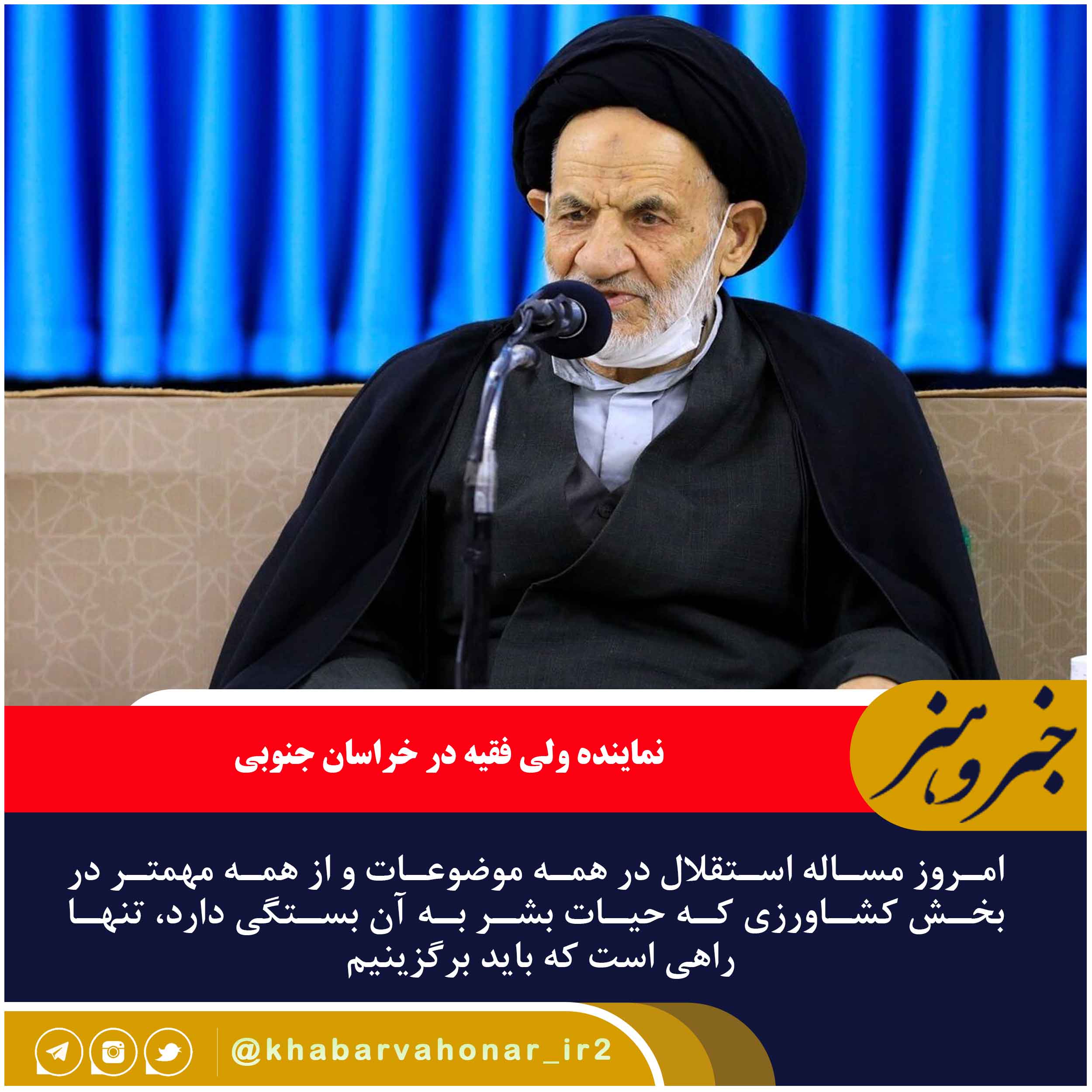 نماینده ولی فقیه در خراسان جنوبی و امام جمعه بیرجند گفت: امروز مساله استقلال در همه موضوعات و از همه مهمتر در بخش کشاورزی که حیات بشر به آن بستگی دارد، تنها راهی است که باید برگزینیم.