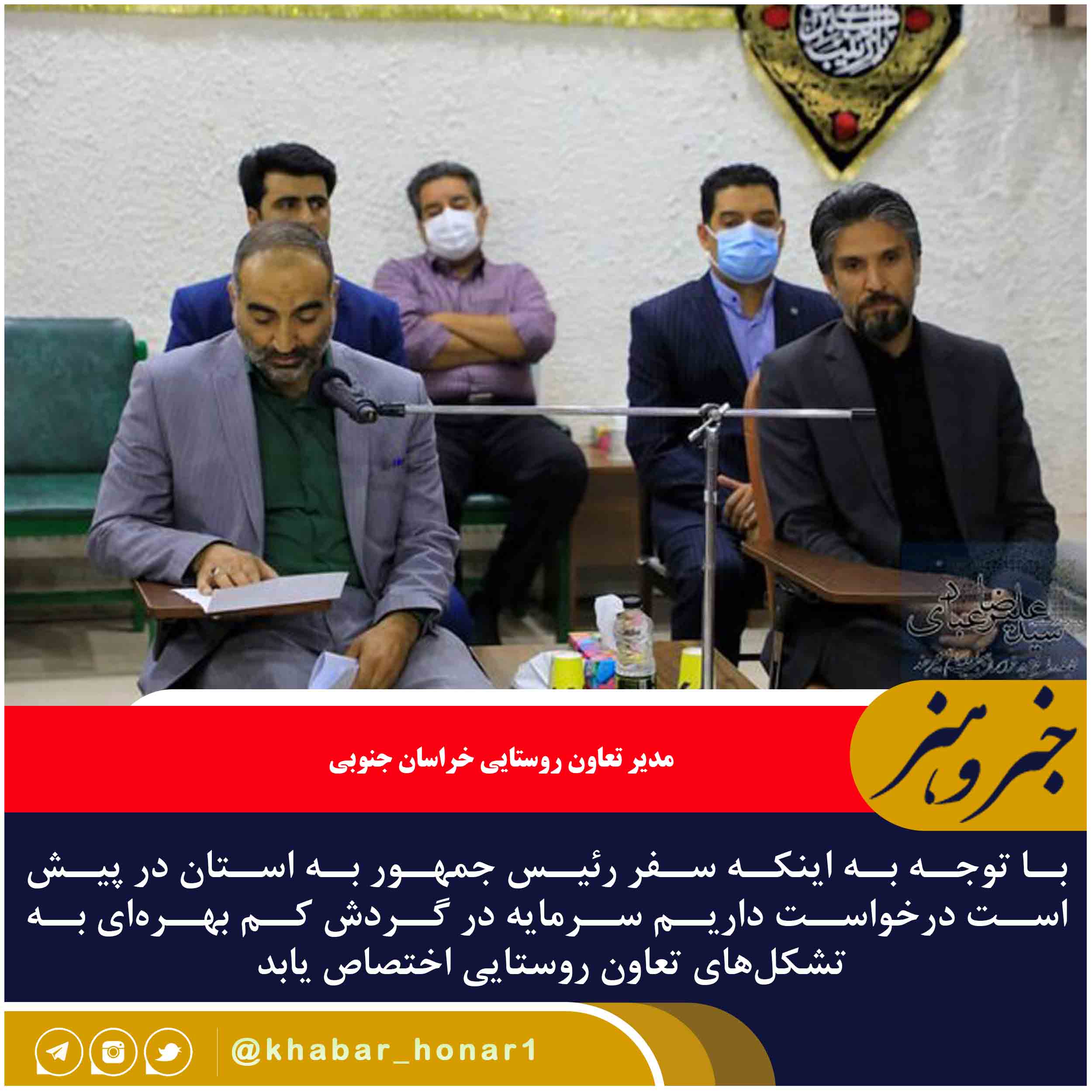 مدیر تعاون روستایی خراسان جنوبی گفت: با توجه به اینکه سفر رئیس جمهور به استان در پیش است درخواست داریم سرمایه در گردش کم بهره‌ای به تشکل‌های تعاون روستایی اختصاص یابد تا از دامنه خدمات دهی به مردم عقب نمانند.