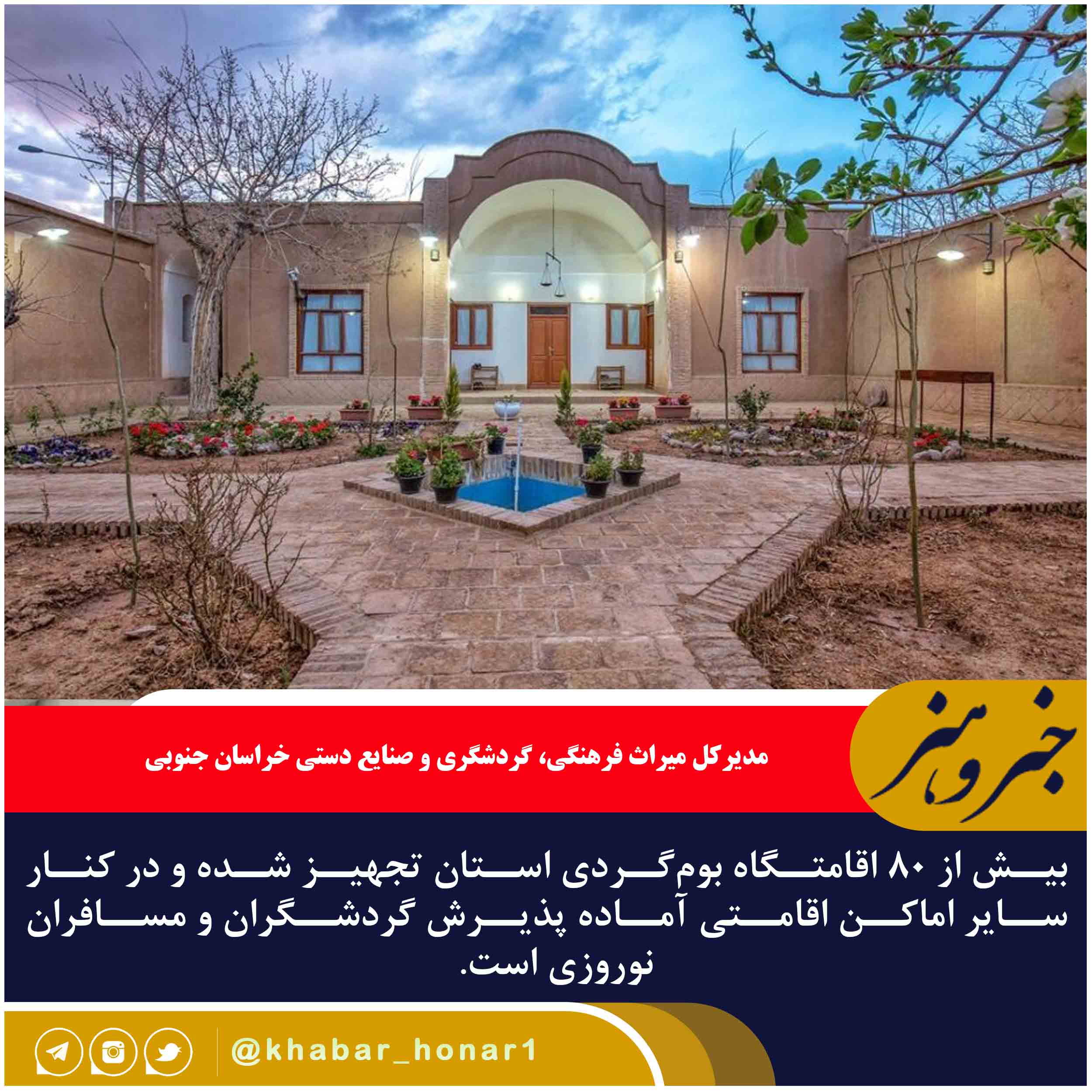 مدیرکل میراث فرهنگی، گردشگری و صنایع دستی خراسان جنوبی گفت: بیش از ۸۰ اقامتگاه بومگردی استان تجهیز شده و در کنار سایر اماکن اقامتی آماده پذیرش گردشگران و مسافران نوروزی است.