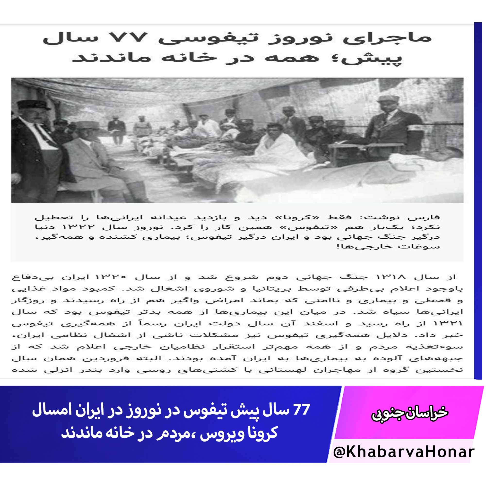 ۷۷ سال پیش تیفوس در نوروز در ایران امسال کرونا ویروس ،مردم در خانه ماندند