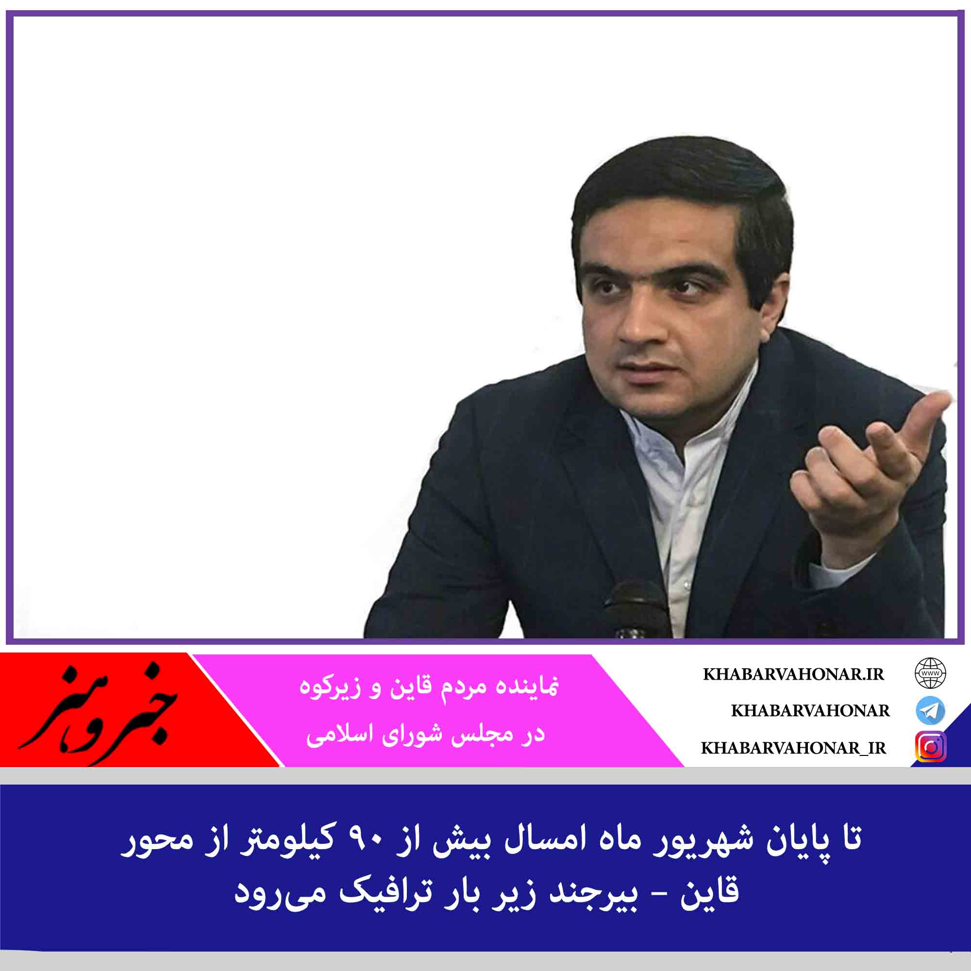 ?نماینده مردم قاین و زیرکوه در مجلس شورای اسلامی گفت: تا پایان شهریور ماه امسال بیش از ۹۰ کیلومتر از محور قاین – بیرجند زیر بار ترافیک می‌رود.