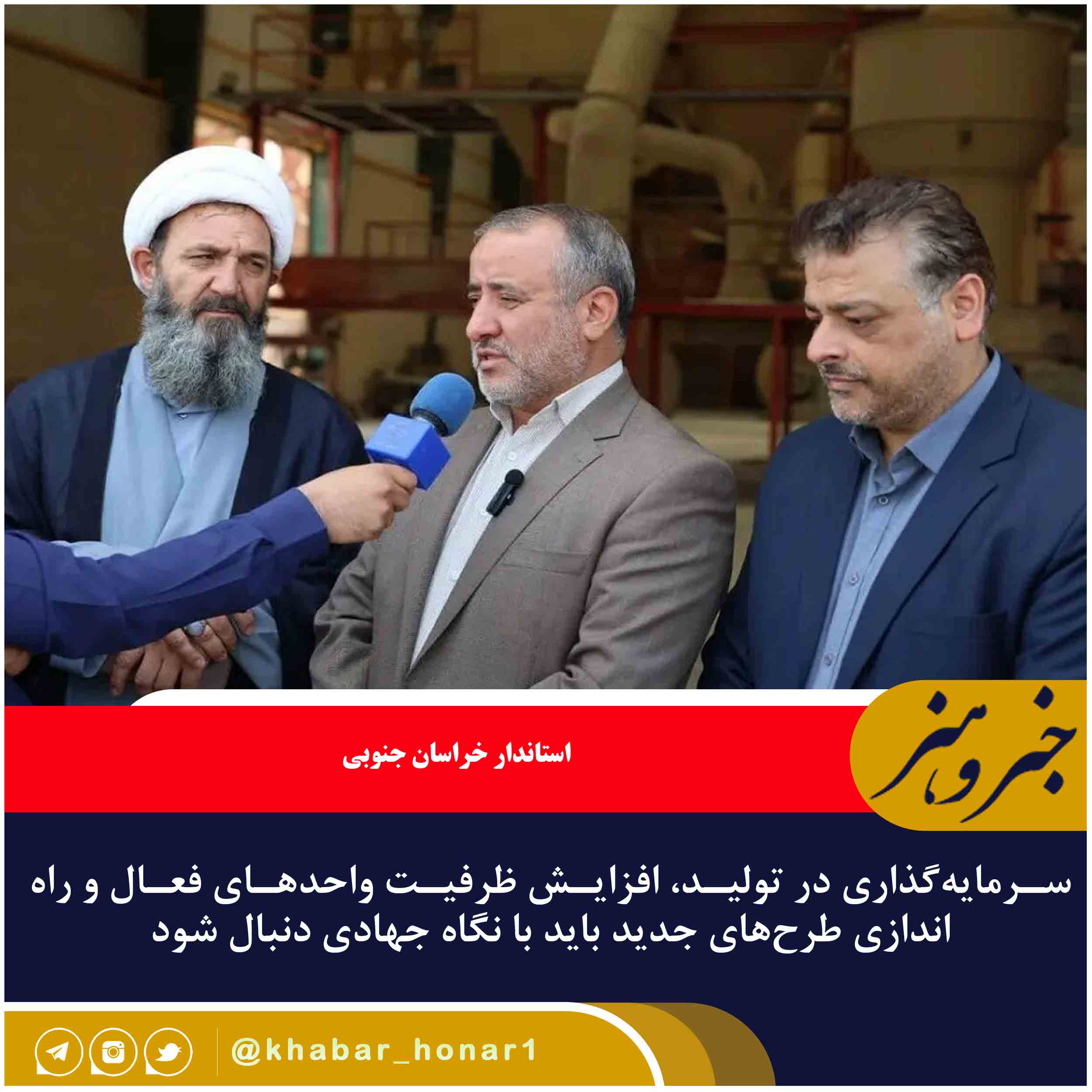 استاندار خراسان جنوبی گفت: سرمایهگذاری در تولید، افزایش ظرفیت واحدهای فعال و راهاندازی طرحهای جدید باید با نگاه جهادی دنبال شود.