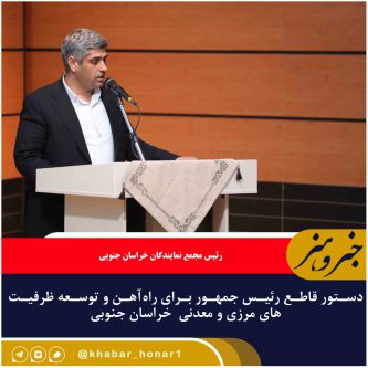 رئیس مجمع نمایندگان خراسان جنوبی با قدردانی از حمایتهای رئیس جمهور، از دستور وی برای تکمیل پروژه راهآهن استان، توسعه ظرفیتهای صادراتی مرز افغانستان و