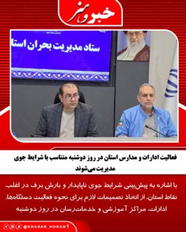 - فعالیت ادارات و مدارس استان در روز دوشنبه متناسب با شرایط جوی مدیریت میشوند